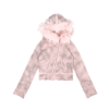 Designer Fuzzy Collar Distressed Hem Cropped Punk Sweatshirt