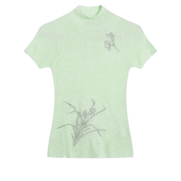 - Elevate your style with this slim knitted T-shirt featuring a high neck design for a chic and sophisticated look.