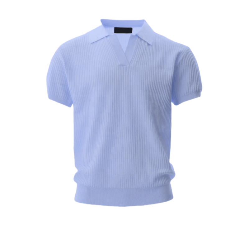 - Elevate your casual style with this knitted polo shirt-inspired T-shirt for a blend of comfort and sophistication.